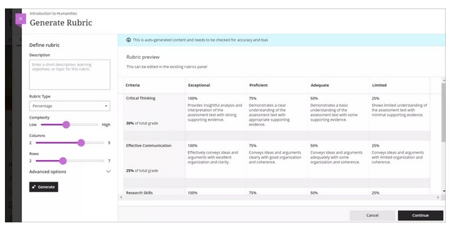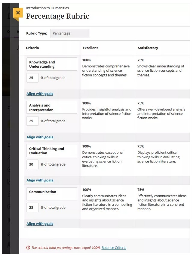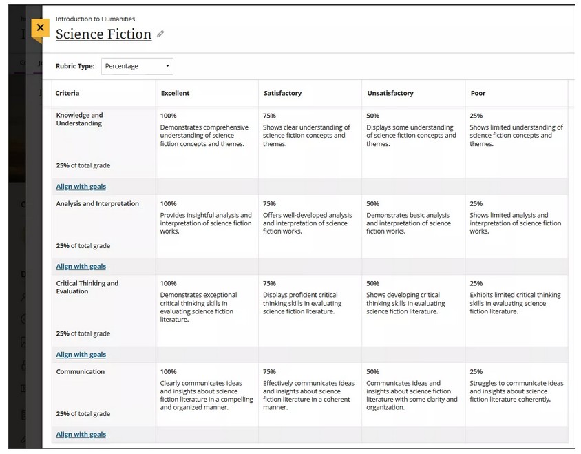 Students can use a rubric to organize their efforts to meet the requirements of the graded work. When you allow students access to rubrics before they complete their work, you provide transparency into your grading methods.