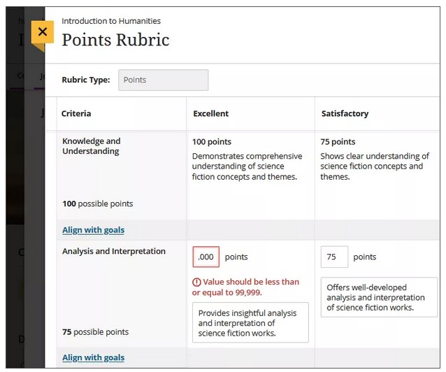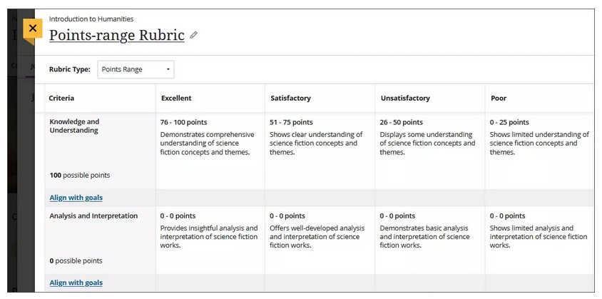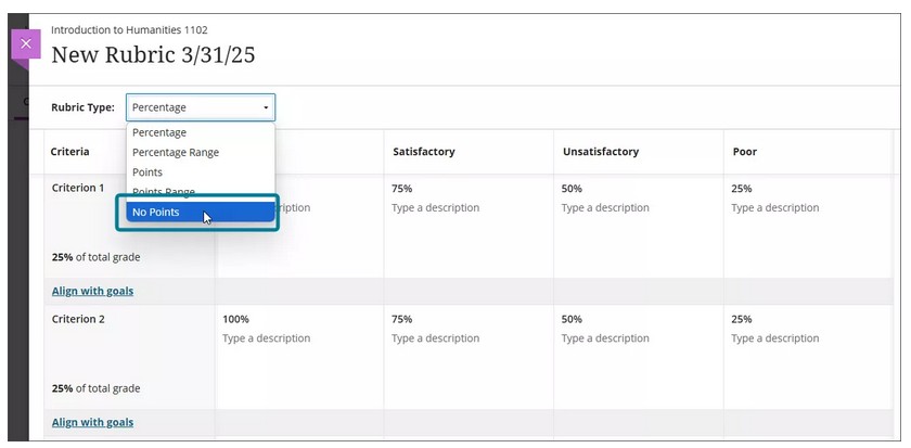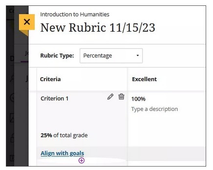 NOTE: You can only associate rubrics with assignments. You can't create rubrics at small screen widths, such as mobile devices. Rubrics are read-only on mobile devices.