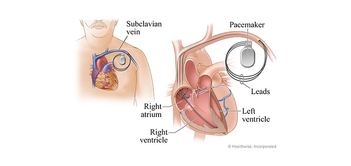 A pacemaker is a small, battery-powered device. It sends electrical signals to the heart. These signals work to keep the heartbeat steady. Thin wires, called leads, carry the signals from the pacemaker to the heart. A pacemaker can prevent or reduce dizziness, fainting, and shortness of breath caused by a slow or unsteady heartbeat.