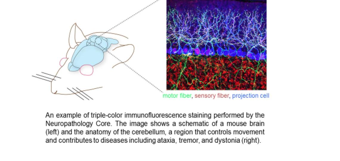 The Neuropathology Core provides the capability to perform structural studies of the brain. It provides users anatomical expertise in preparing and analyzing developing and adult brains for deviations from typical structure in species ranging from rodents through to primates, including human. It also now offers the same high quality service for studies of the fruit fly Drosophila melanogaster.